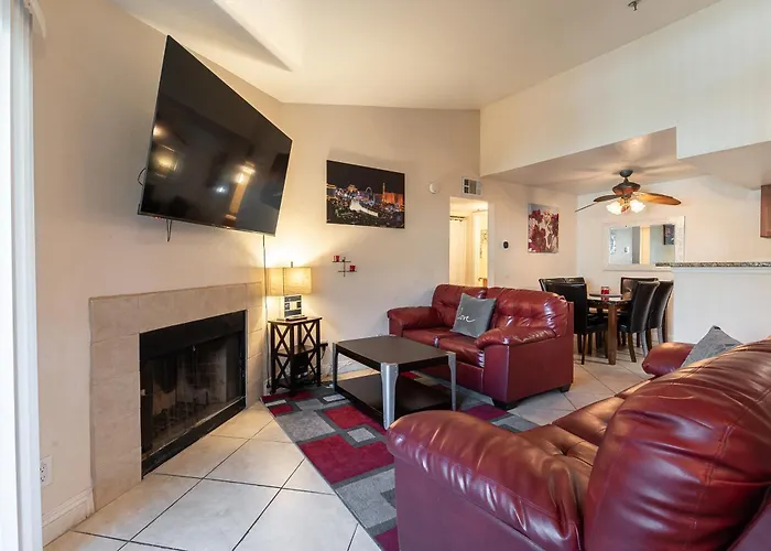 Les hôtes du domicile de 90 m² peuvent rejoindre le centre de Las Vegas en 15 minutes à pied. Ces propriétés Appartement Rio-Adjacent 2Br Pool, Gym, Free Parking bénéficie d'un emplacement principal à environ 10 minutes en voiture de la Salle omnisports T-Mobile Arena. Le MGM Grand se trouve à 3 km de l'appartement.